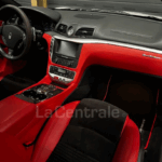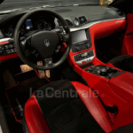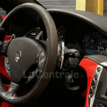 La voiture a été expertisée il y a 3 mois par le cabinet d’expertise de mon assureur au prix que j’en demande. Comme on le voit sur les photos la voiture a été « customisée ». Sigle Trident sur le toit, rétros carbones, sigle Maserati à l’ouverture des portes, etc. Elle a été toujours dans un box sous housse de protection