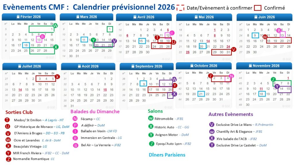 Retrouvez tous nos événements 2026 , Salons, Rallyes Club, Sorties Régionales et autres événements
